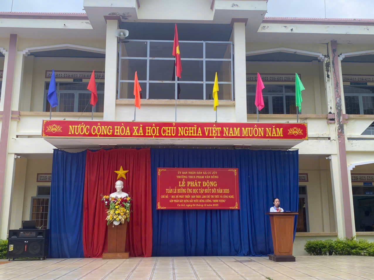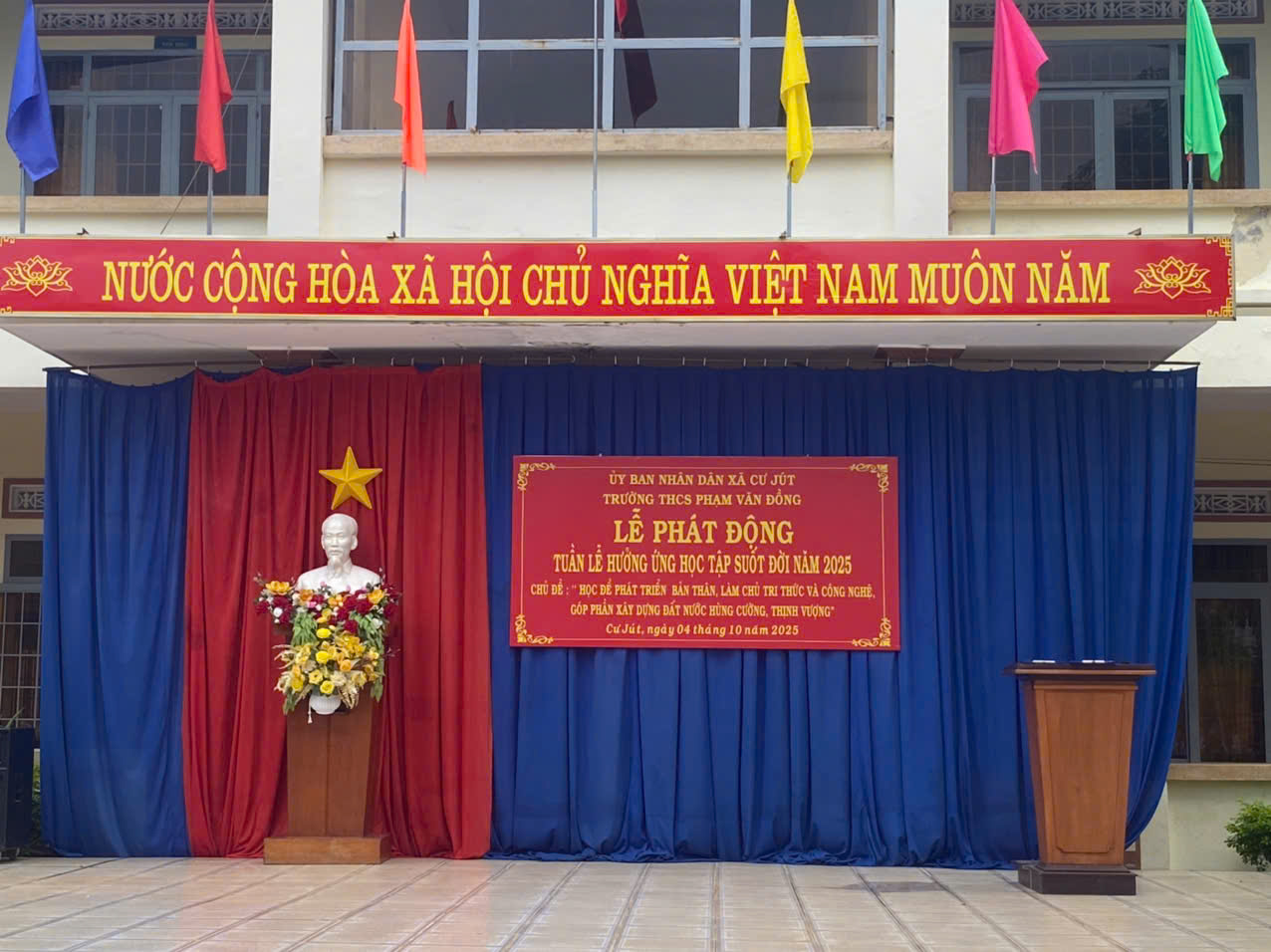 Hôm nay, ngày 04/10/2025 trường THCS Phạm Văn Đồng long trọng tổ chức Tuần lễ hưởng ứng học tập suốt đời năm 2025 với chủ đề “Học để phát triển bản thân, làm chủ tri thức và công nghệ, góp phần xây dựng đất nước hùng cường, thịnh vượng”,