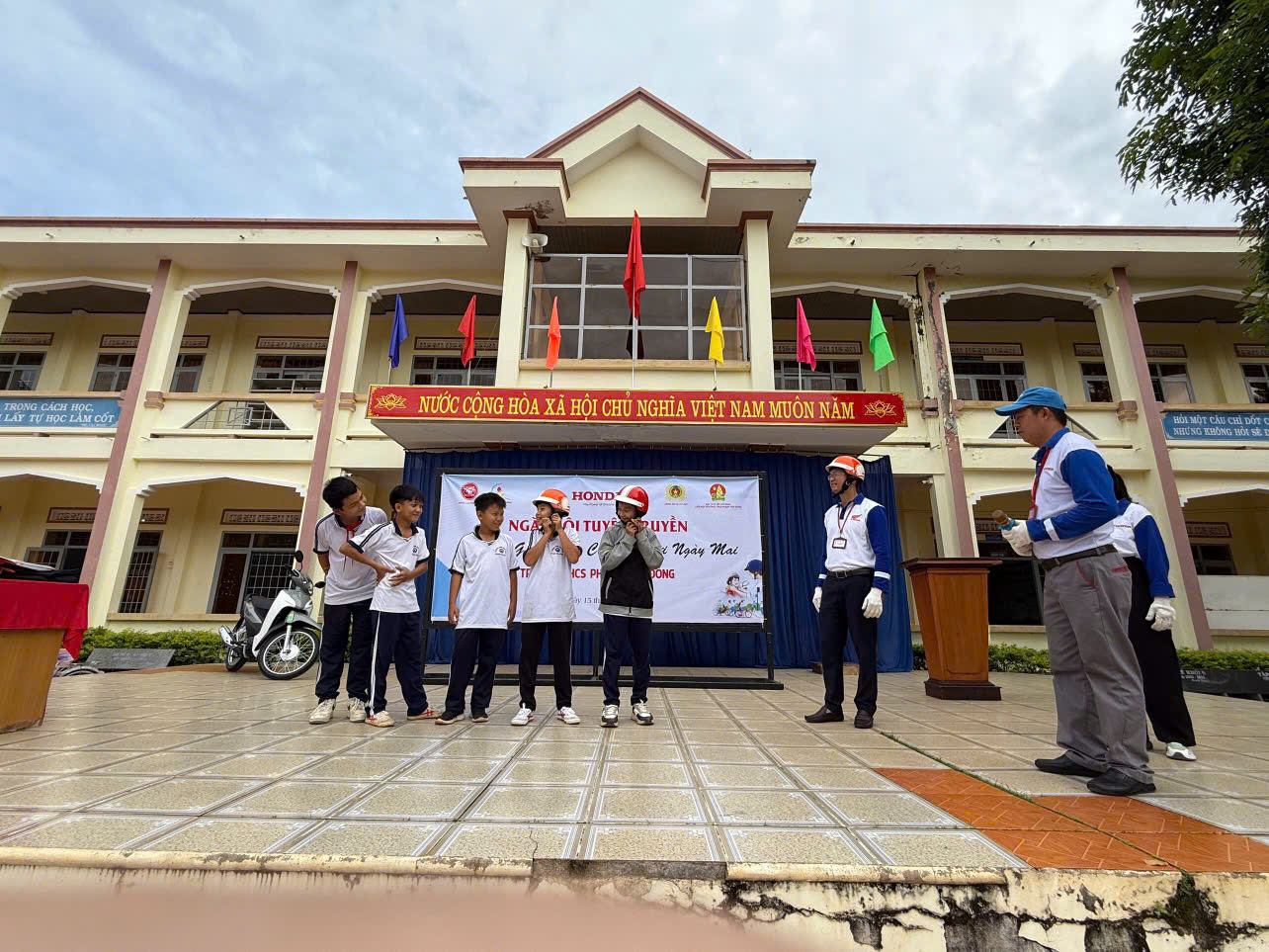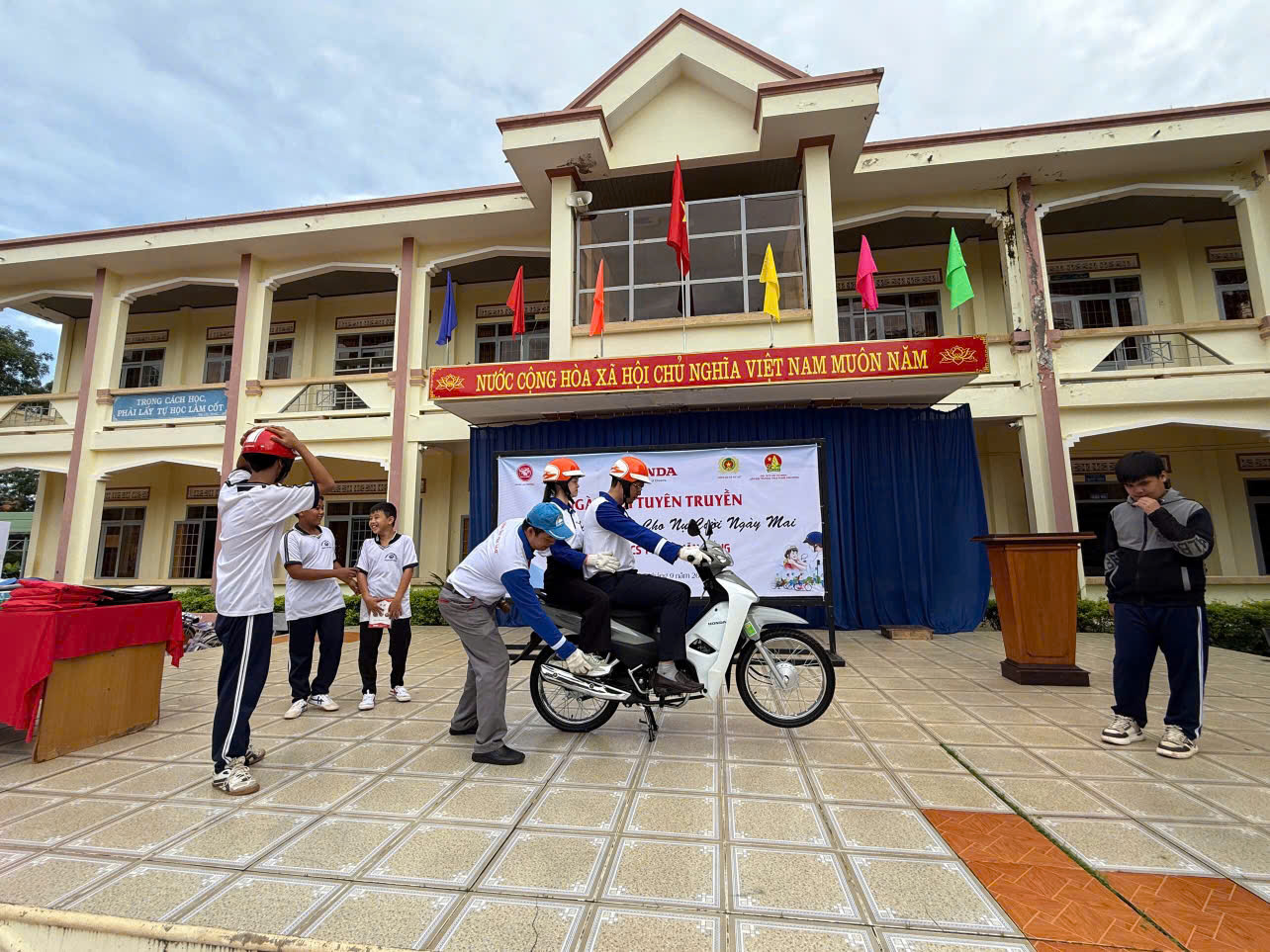 🖊️🖊️Thực hiện kế hoạch phối hợp giữa công an tỉnh Lâm Đồng, công an xã Cư Jut và đại lí Hon Đa Huân Lai Hương xã Cư Jut, nhà trường kết hợp liên đội tổ chức tuyên truyền giáo dục pháp luật về An toàn giao thông đường bộ đến các em đội viên.